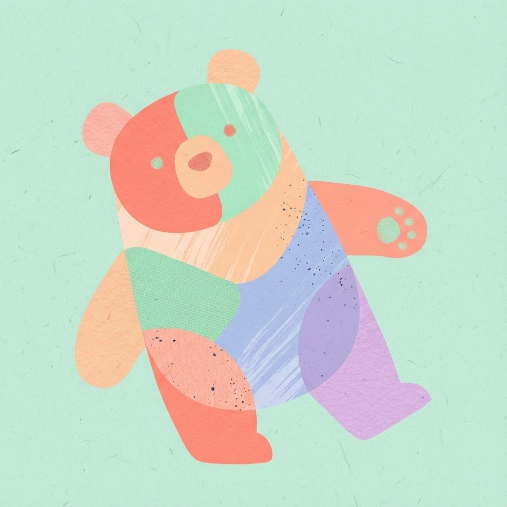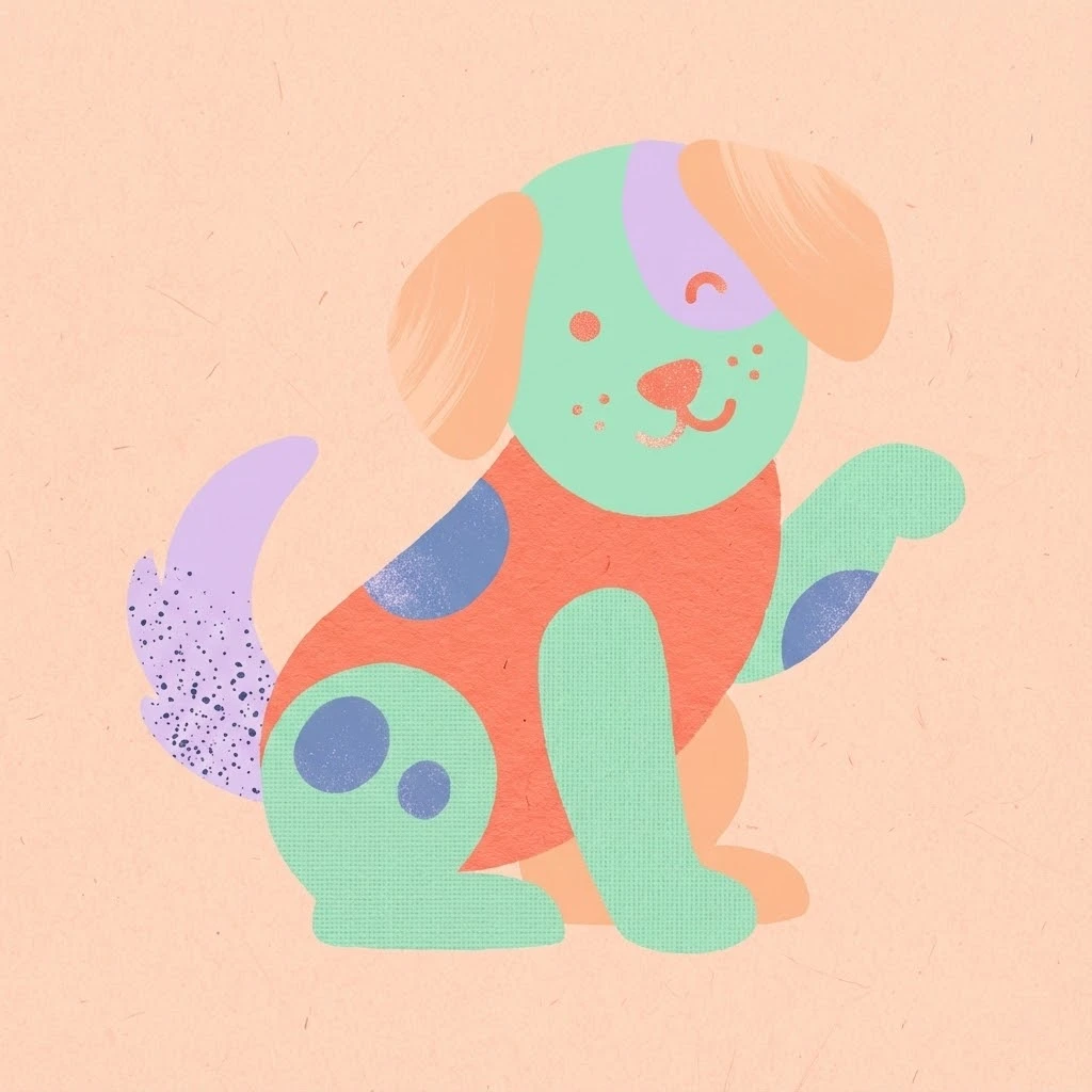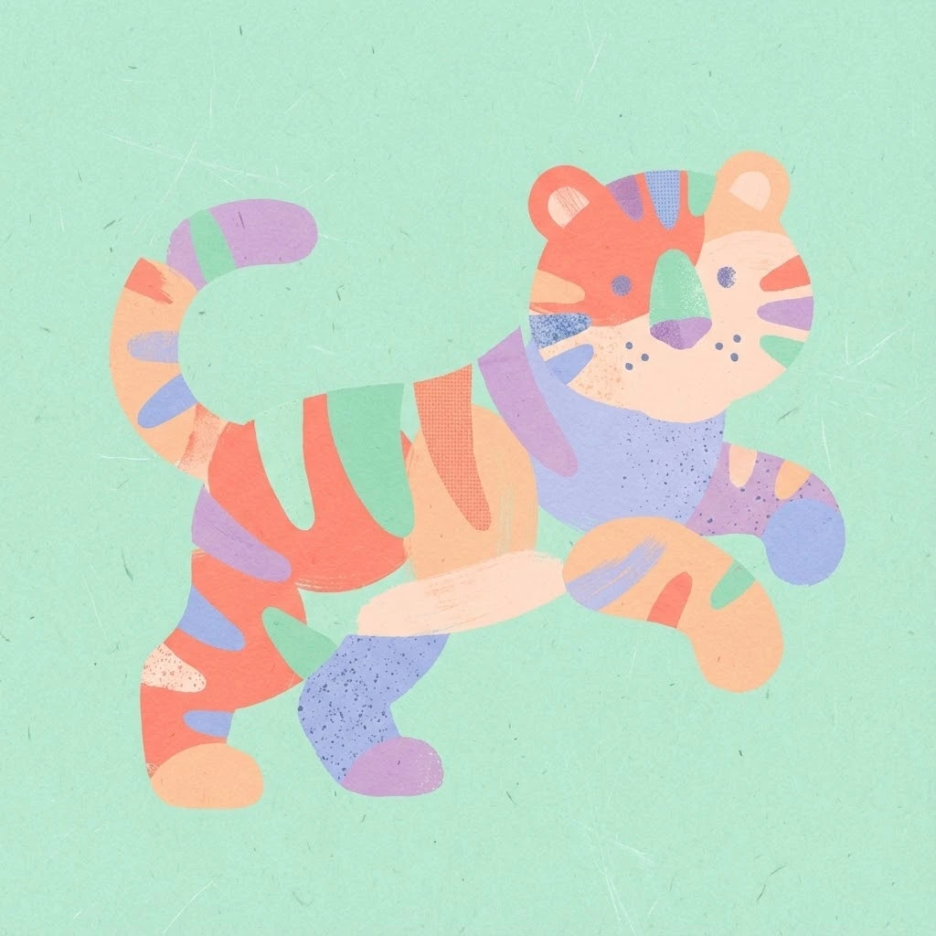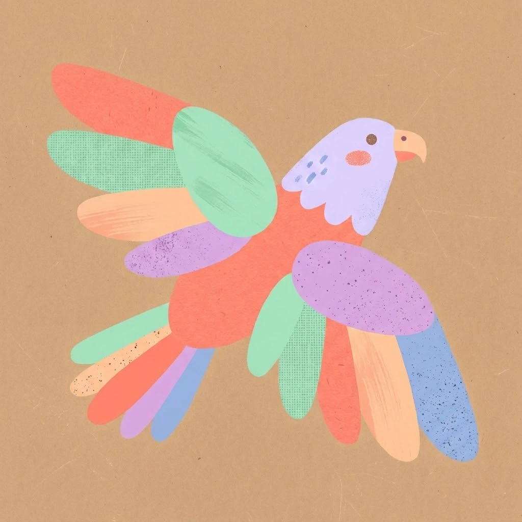 Prompt: { "title": "Textured-Only Playful Abstract Animal Illustration", "subject": "Playful abstract illustration of a <ANIMAL>", "style": "Abstract, simplified flat shapes, overlapping forms, hand-crafted feel, rounded edges", "composition": "Centered subject, clear silhouette, balanced spacing, slightly playful posture", "color_palette": "Flat pastel tones only — coral, mint, peach, lavender, soft blue — no gradients", "textures": "Visible textures only: paper grain, canvas weave, light brush strokes, soft speckled noise, printed-ink texture", "background": "Flat background with subtle paper texture, optional faint texture overlays (scratches, fibers), no decorative gradients", "lighting": "Completely flat, no highlights, no drop shadows, no dimensional shading", "mood": "Playful, handmade, cheerful, kid-safe, friendly", "details": "Minimal facial hints, small textured dots or shapes for accents, clean edges that feel slightly organic", "output_quality": "High-resolution, crisp lines but naturally imperfect edges for authenticity", "constraints": "No gradients, no glow, no photoreal effects, no realistic fur, no logos, no text, no clutter, no heavy shadows", "aspect_ratio": "<AR>" }