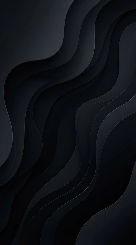 Prompt: An abstract black wallpaper featuring flowing shapes and layered dark tones, smooth curves, gentle depth, and an artistic yet controlled composition — aspect ratio: <AR>.