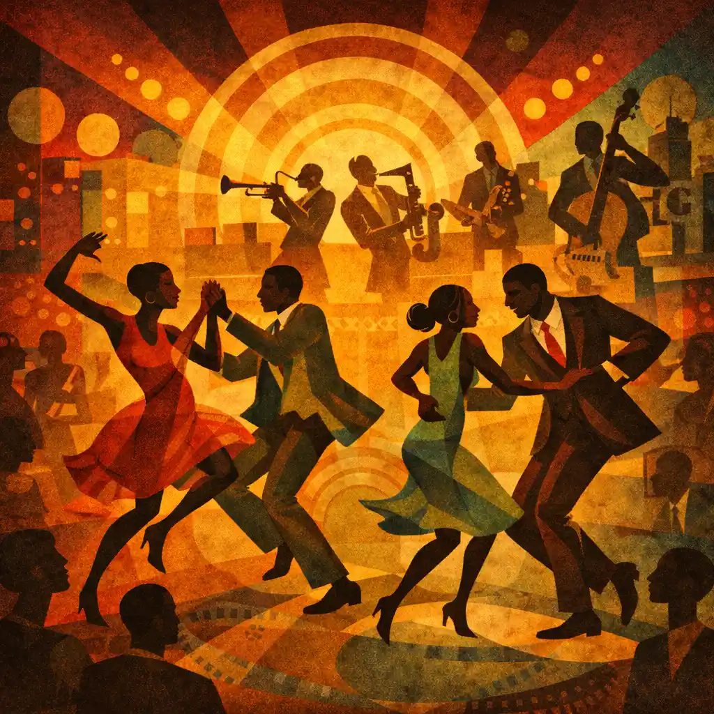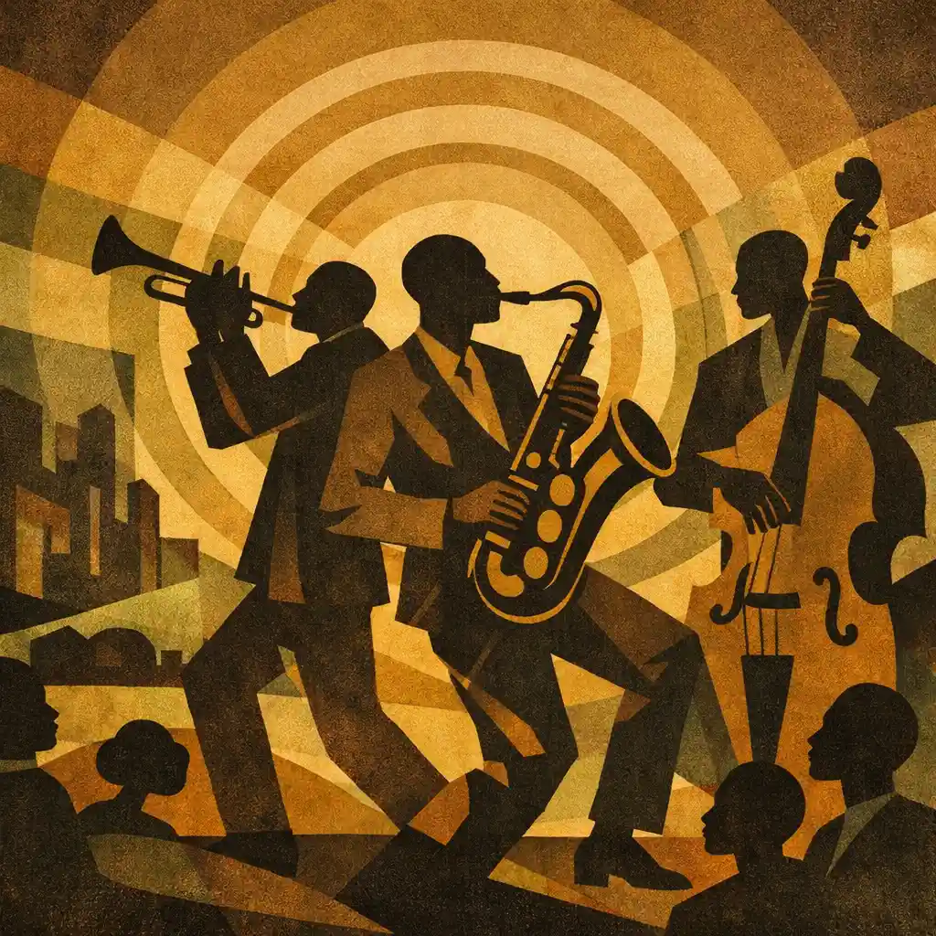 Jazz Age Rhythm (Aaron Douglas Core Style) Prompt: