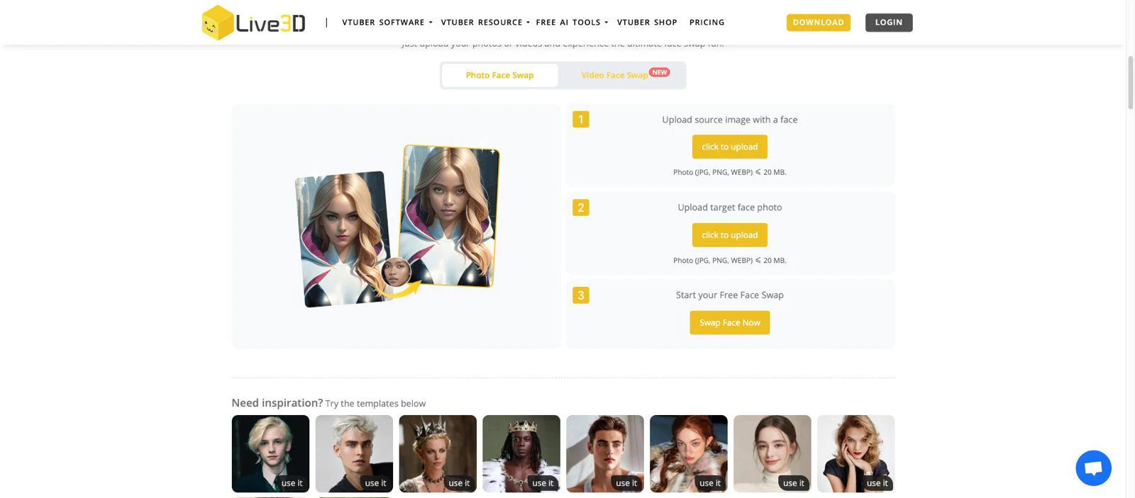 | Live3D | The winner for pure convenience. They offer unlimited free photo swaps and, crucially, require zero sign-up to use. | live3d.io |