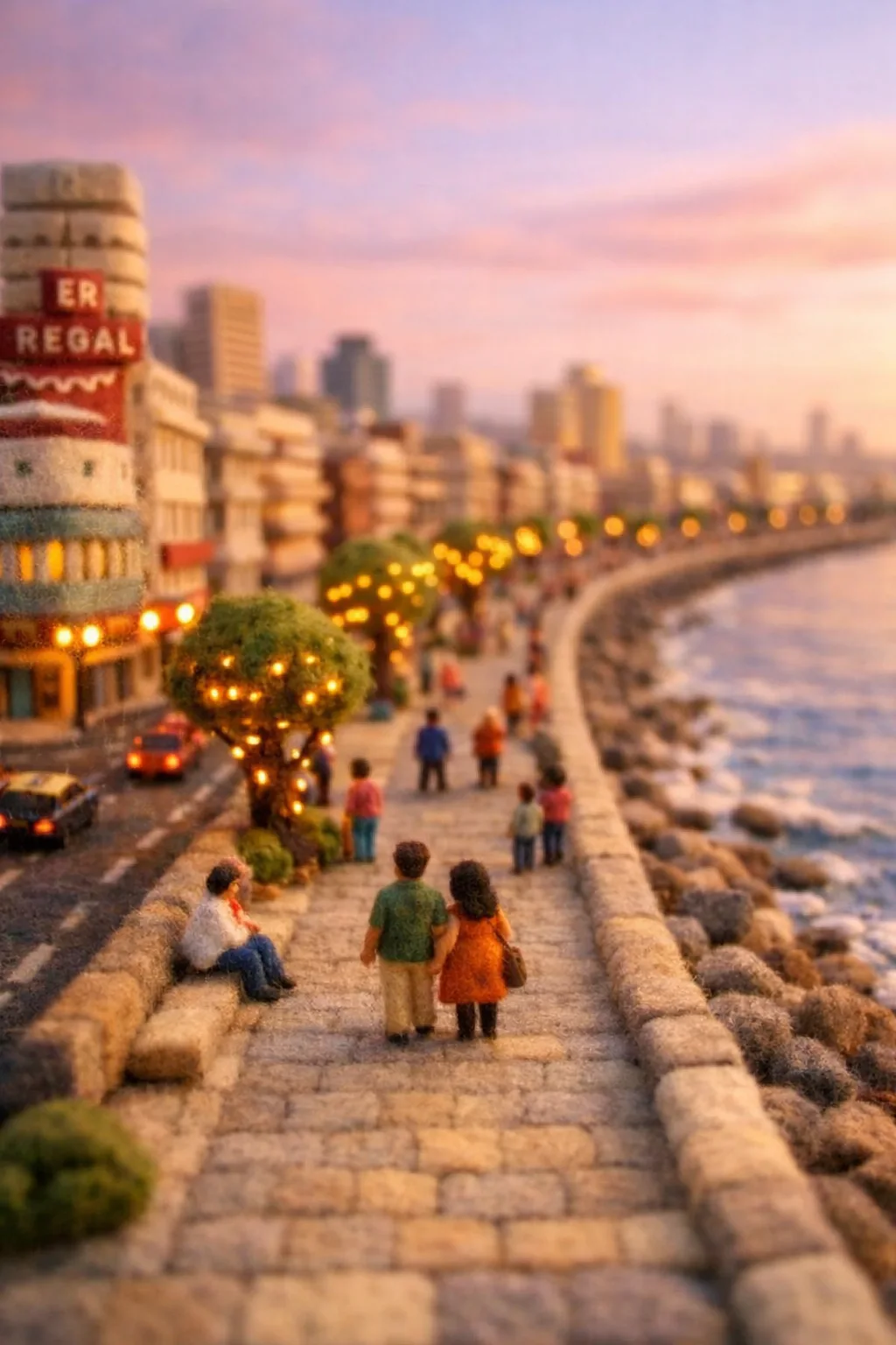 A miniature diorama turns large real-world locations into charming tiny scenes that feel handcrafted and magical. Instead of showing a full-scale city, the visual style presents streets, buildings, and landscapes as if they are part of a carefully built model.
