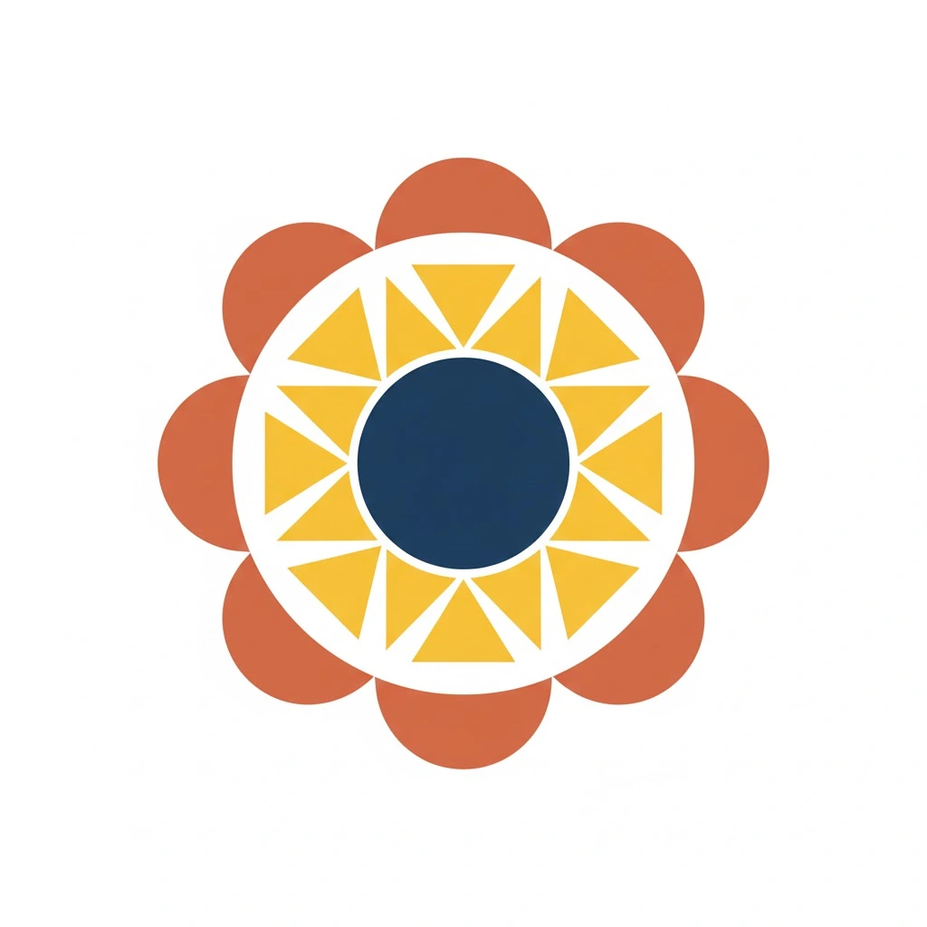 Prompt: “Geometric sun clipart made of triangles and semi-circles, sharp clean shapes, flat solid colors, modern abstract look, symmetrical radial layout, strong contrast, transparent background — aspect ratio: <AR>