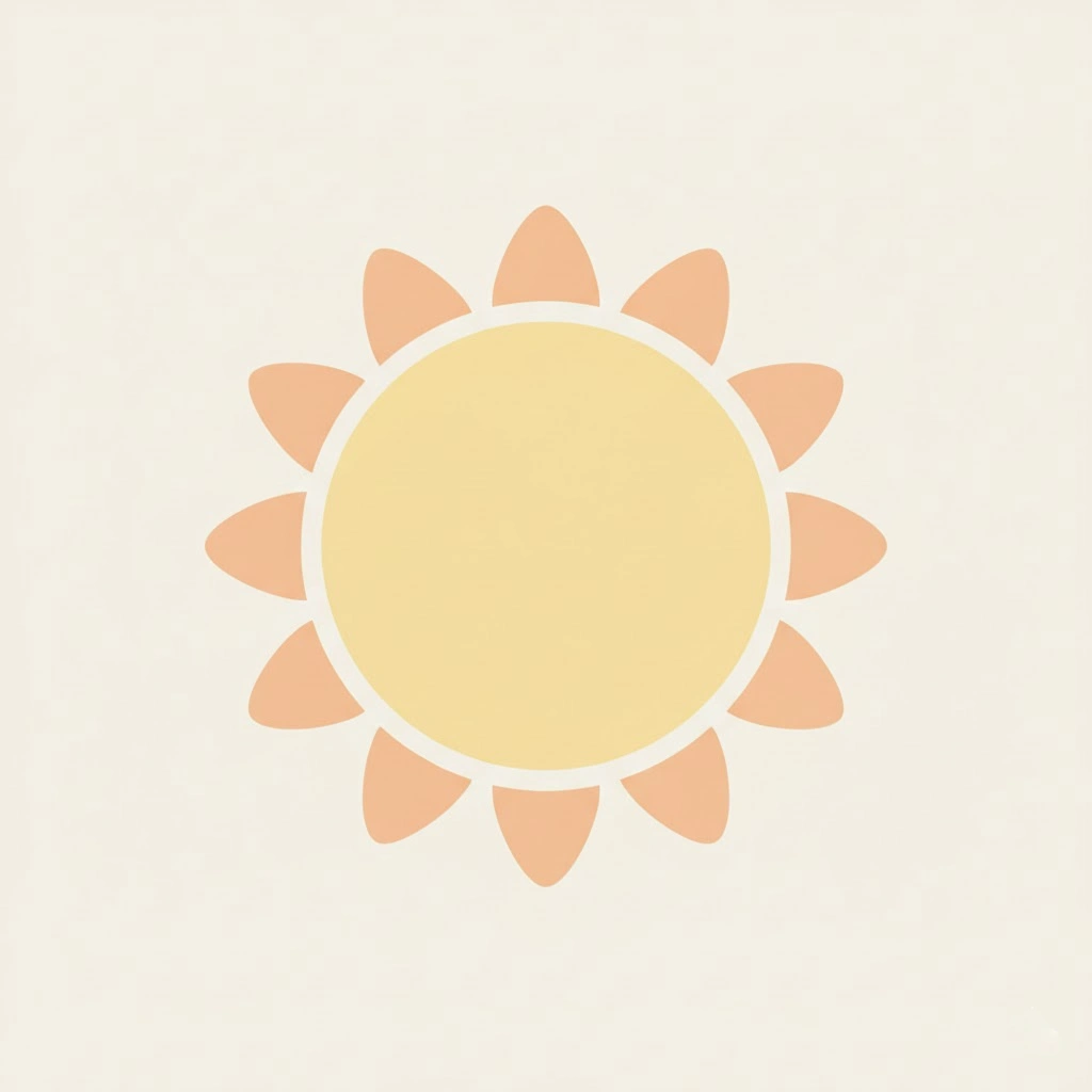 Prompt: “Soft pastel sun clipart, rounded sun shape with short curved rays, muted pastel yellow and peach tones, smooth matte finish, calm minimal style, friendly and soothing appearance, transparent background — aspect ratio: <AR>
